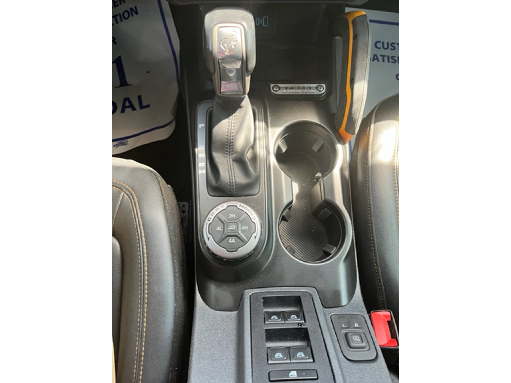Equipment Group 334A Lux Package: Rear Parking Sensors; Power Outlet - Back Side of Center Floor Console; Auto-Dimming Interior Rearview Mirror; Driver and Front Passenger Illuminated Sliding Visor Vanity Mirrors; Evasive Steering Assist; Heated Steering Wheel; Additional Sound Deadening; Information on Demand Panel; Wireless Charging Pad; Dual-Zone Electronic Automatic Temperature Control; Ambient Footwell Lighting; Remote Start System; Marine Grade Vinyl Bucket Seats; 2-Door Intelligent Access with Lock/unlock; Connected Built-In Navigation; 17 Machined Carbonized Aluminum Wheels; 2 Smart Charging USB Ports in Dashboard; 12 LCD Capacitive Touchscreen with Swipe Capability; Front Row Heated Seats; Adaptive Cruise Control; B&O Sound System by Bang and Olufsen; Enhanced Voice Recognition; Front Parking Sensors; 360-Degree Camera; LT285/70R17 A/T Tires; Universal Garage Door Opener; Sideview Mirrors. Ford Co-Pilot360: Auto High-Beam Headlamps; Rear View Camera; Pre-Collision Assist with Automatic Emergency Braking; Blind Spot Information System (BLIS); Lane-Keeping System. Sasquatch Package: High Clearance Fender Flares; High Clearance Suspension; Position-Sensitive Bilstein Shock Absorbers. Carbonized Gray Molded-In-color Hard Top. Connected Built-In Navigation. Towing Capability. Ford Performance Heavy-Duty Modular Front Bumper. Front and Rear Floor Liners. **Equipment listed is based on original vehicle build and subject to change. Please confirm the accuracy of the included equipment by calling the dealer prior to purchase.**