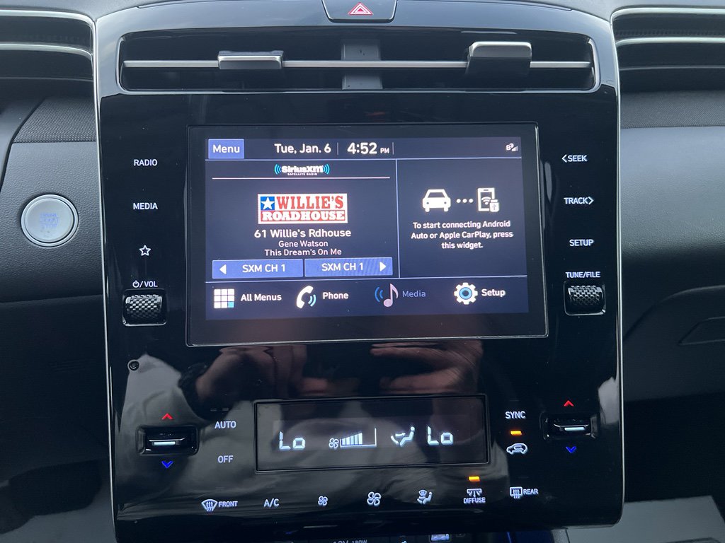 This vehicle offers Android Auto for seamless smartphone integration. The leather seats in the vehicle are a must for buyers looking for comfort, durability, and style. This unit offers Automatic Climate Control for personalized comfort. Our dealership has already run the CARFAX report and it is clean. A clean CARFAX is a great asset for resale value in the future. Good News! This certified CARFAX 1-owner vehicle has only had one owner before you. Apple CarPlay: Seamless smartphone integration for the vehicle - stay connected and entertained on the go! This unit features a hands-free Bluetooth phone system. Start this Hyundai Tucson from inside with remote start. See what's behind you with the back up camera on this unit. Quickly unlock this mid-size suv with keyless entry. Maintaining a stable interior temperature in the Hyundai Tucson is easy with the climate control system. Load groceries and much more with ease into this unit thanks to the power liftgate.