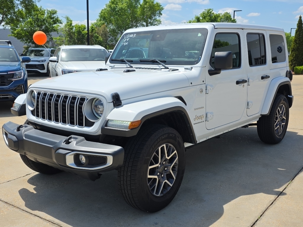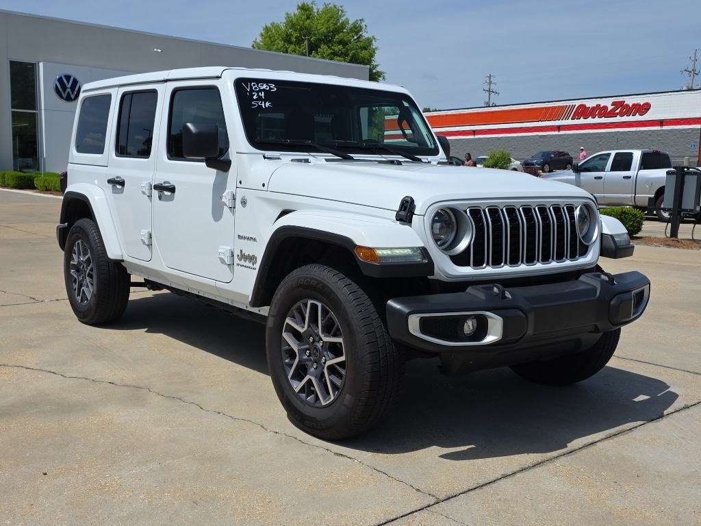Discover adventure-ready capability with this 2024 Jeep Wrangler Sahara, now available in Tupelo, MS. Combining iconic off-road heritage with modern comfort and tech, this 4WD Jeep Wrangler is powered by a responsive 4-cylinder 2.0L gasoline engine designed for efficiency and spirited performance on- and off-road. The Sahara trim balances rugged capability with refined features, making daily driving and weekend escapes equally enjoyable. Inside, this Jeep Wrangler is equipped with Hands-Free Bluetooth and Apple CarPlay for seamless smartphone integration and intuitive connectivity on the go. Automatic Climate Control keeps the cabin comfortable in any weather, while Adaptive Cruise Control enhances highway confidence by maintaining a safe following distance with minimal driver input. Practical utility is paired with thoughtful convenience and advanced safety technology to support every journey. This vehicle's CARFAX 1-Owner history adds extra peace of mind, reflecting careful ownership and a maintained background. Exterior design cues include signature Jeep styling and removable roof options for open-air freedom, while the interior offers durable materials and versatile cargo space to accommodate gear and passengers. Located in Tupelo, MS, this 2024 Jeep Wrangler Sahara is ready for your next adventure, whether navigating city streets or exploring rugged trails. Contact the showroom to schedule a test drive and experience the capability and comfort of this distinctive Jeep Wrangler in person.